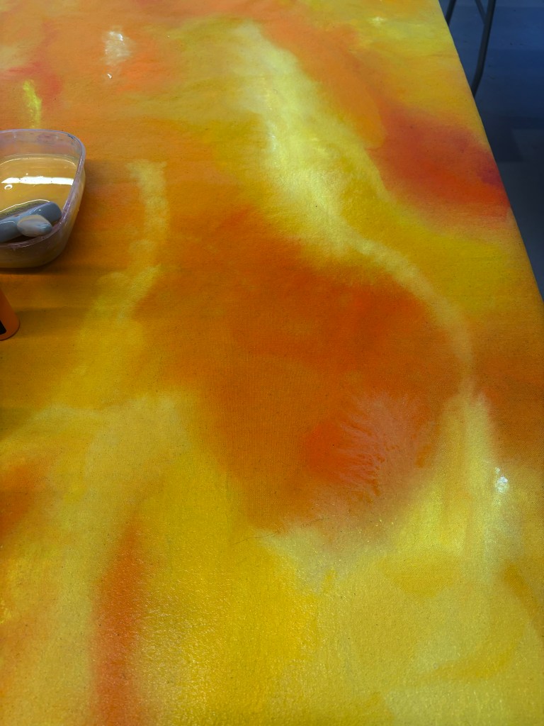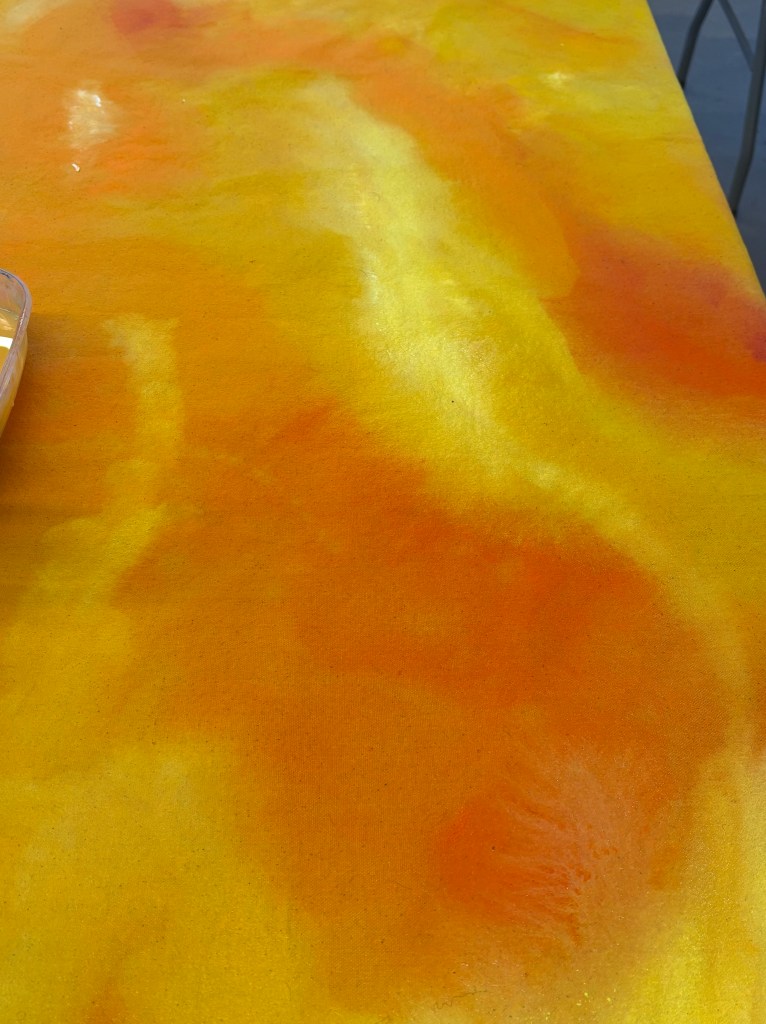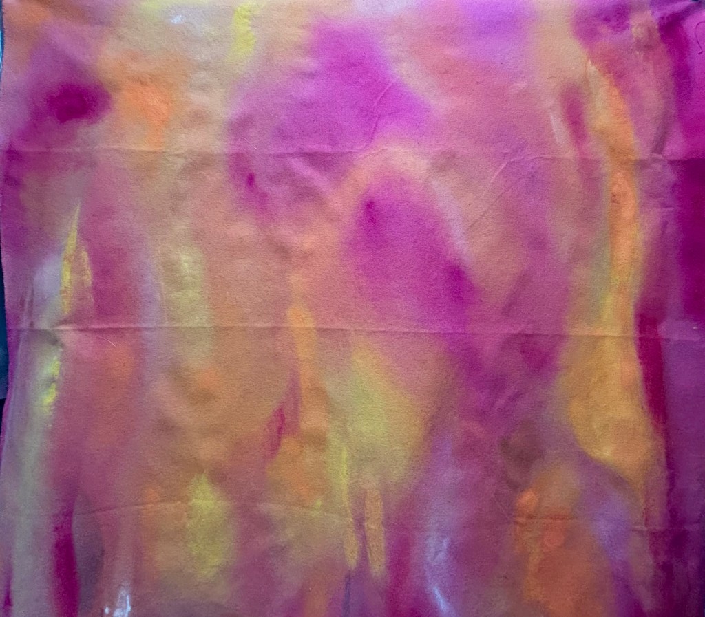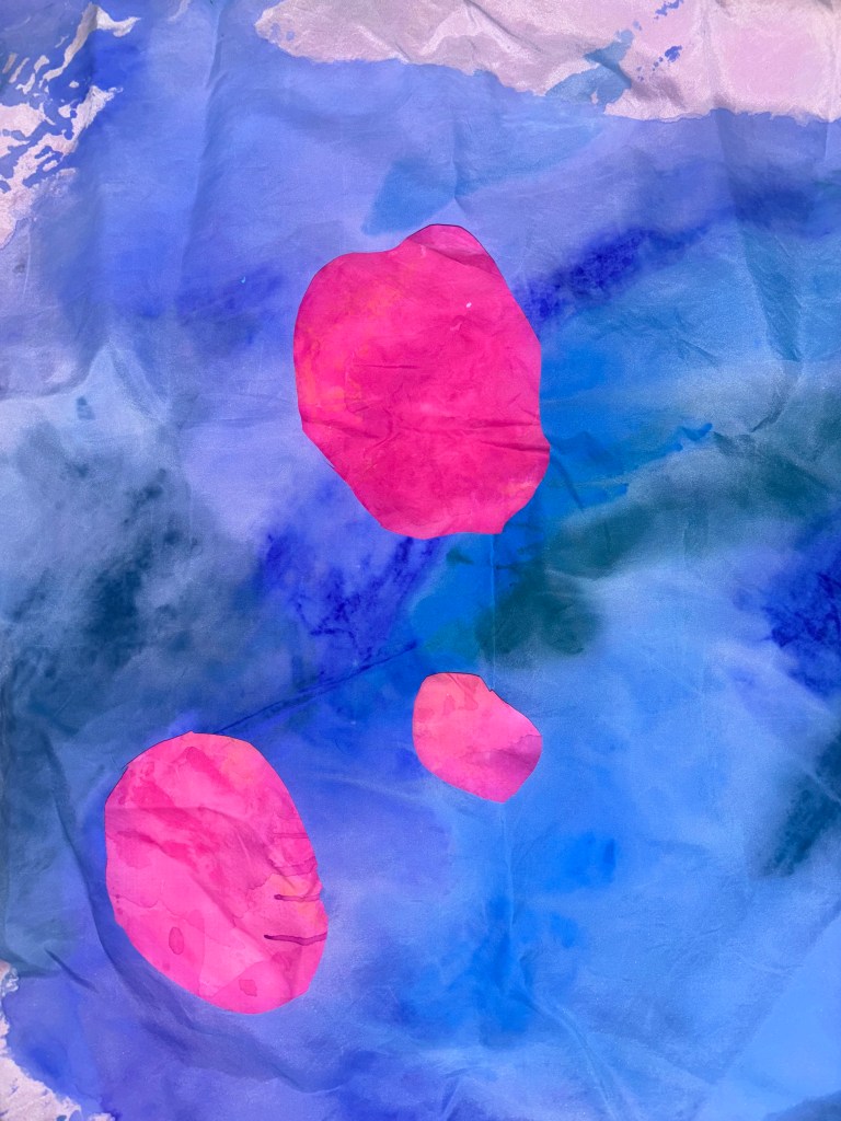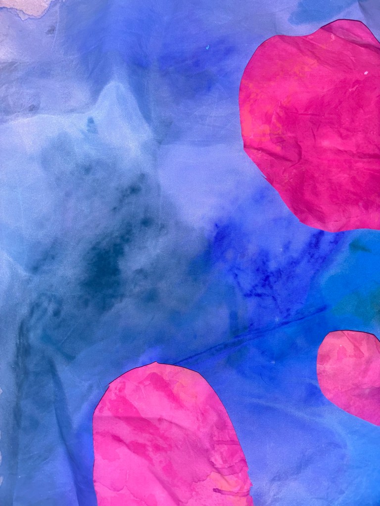 The mixture of silk paint and water allowed the paint to move smoothly across the fabric.
