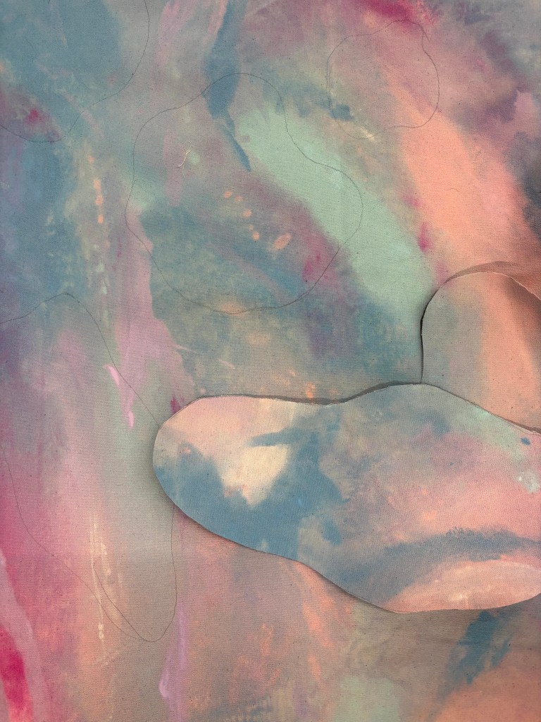 Using acrylic layers of paint and silk fabric paint mixed with water