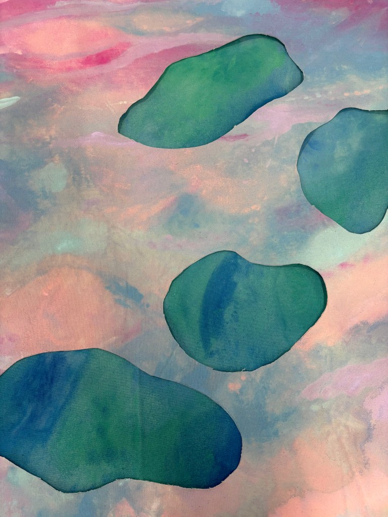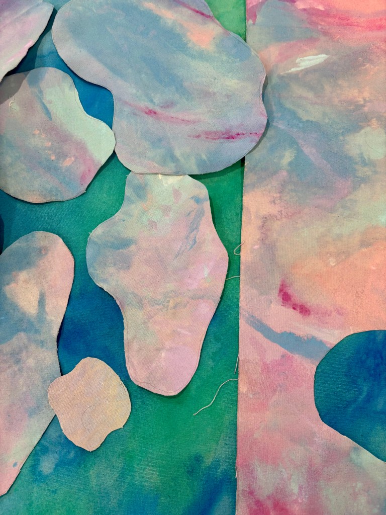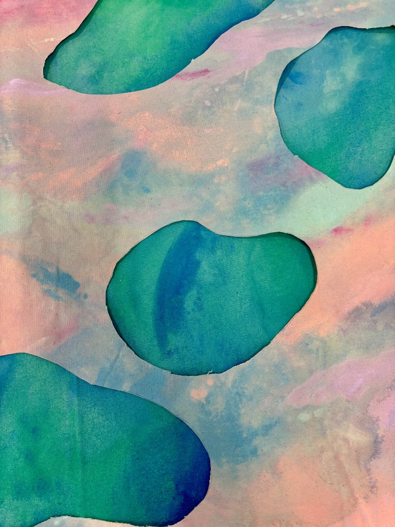 3x canvas sheets painted with acrylic paint